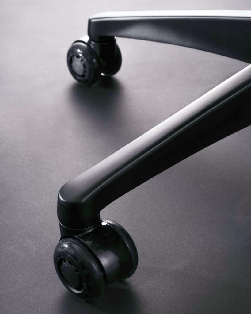 アルミフレームの重厚感あふれるボディであるものの、このキャスターのおかげで比較的軽い力でチェアを操作できるようになっています。