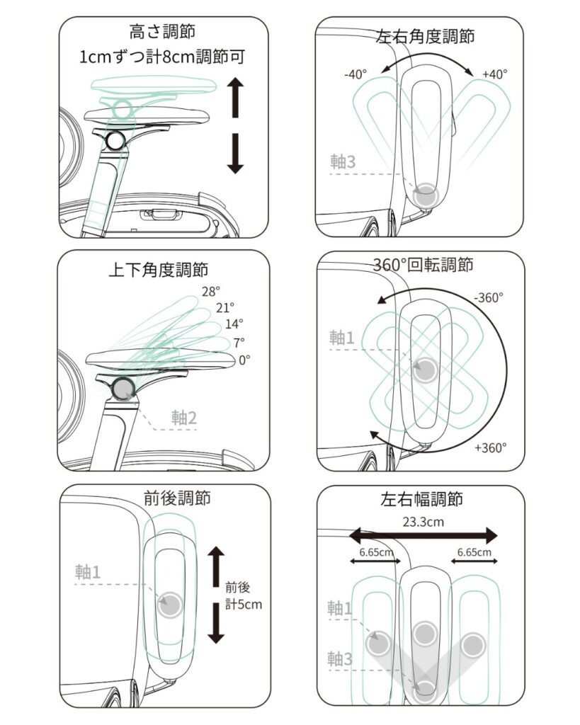 ・ヘッドレスト、アームレストの可動域はほぼ同等。座面の高さ的に150cm-165cmの方はPro 2がおすすめ。