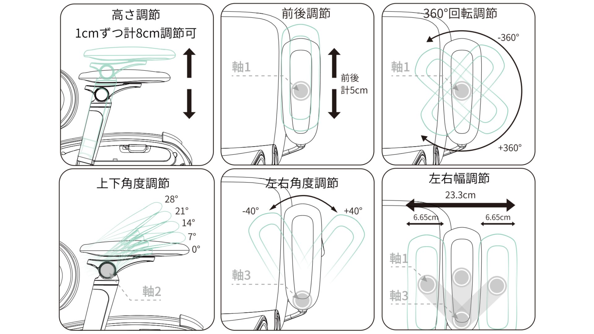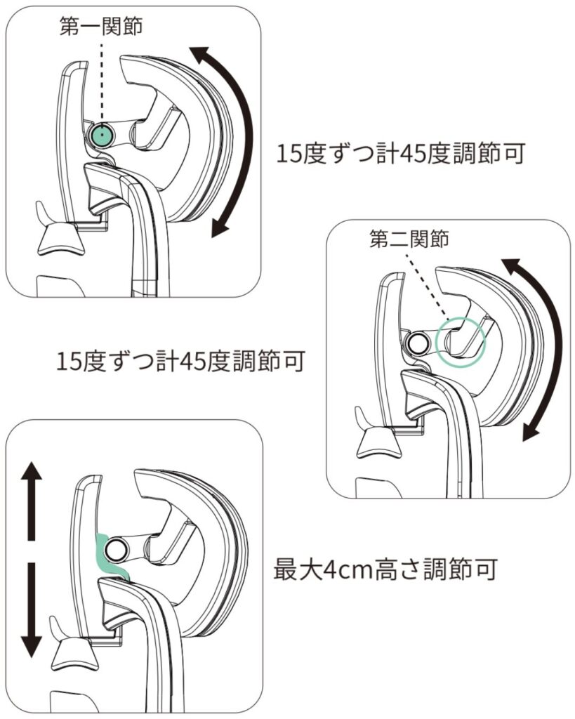 可動域が前モデルよりも格段に上がった(2Dから3Dへ)ことにより、自分の首の位置に会う場所にヘッドレストを設置ができるようになっている。