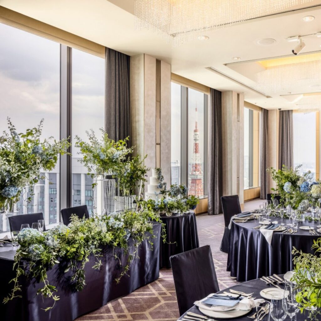モダンクラシックをテーマとし、41階の大きな窓から見渡せる眺望が特徴的な中宴会場。