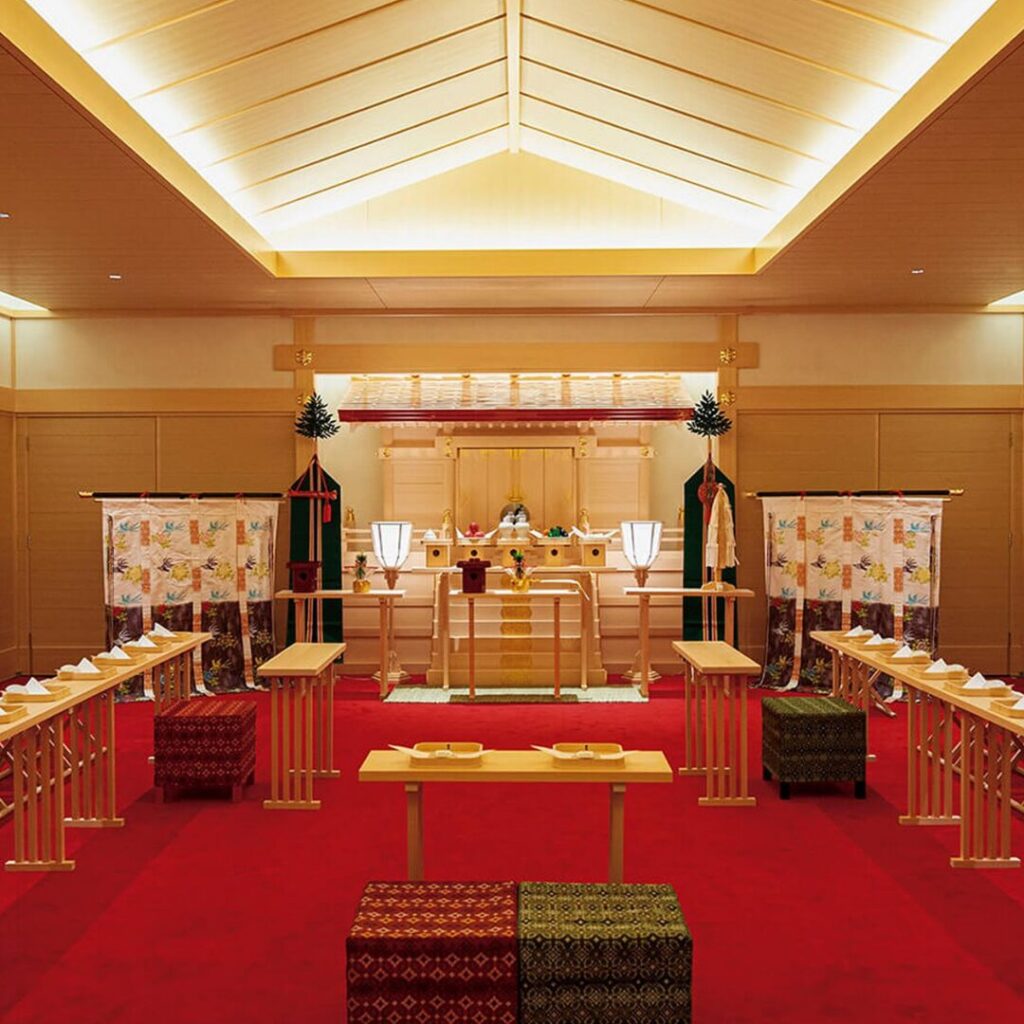 創業時のオークラ本館の伝統を受け継いだ神前式場だそうで、総檜造りによる和の香りのなか、雅楽の演奏により、厳かで由緒正しき神前式が叶うようです。明治33年、神前結婚式を創始したことでも名高く、縁結びの神様として知られている「東京大神宮」の御霊をお祀りしているそうです。日本式の挙式を希望する方には嬉しい会場だと思います。