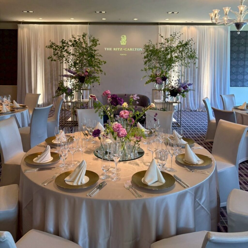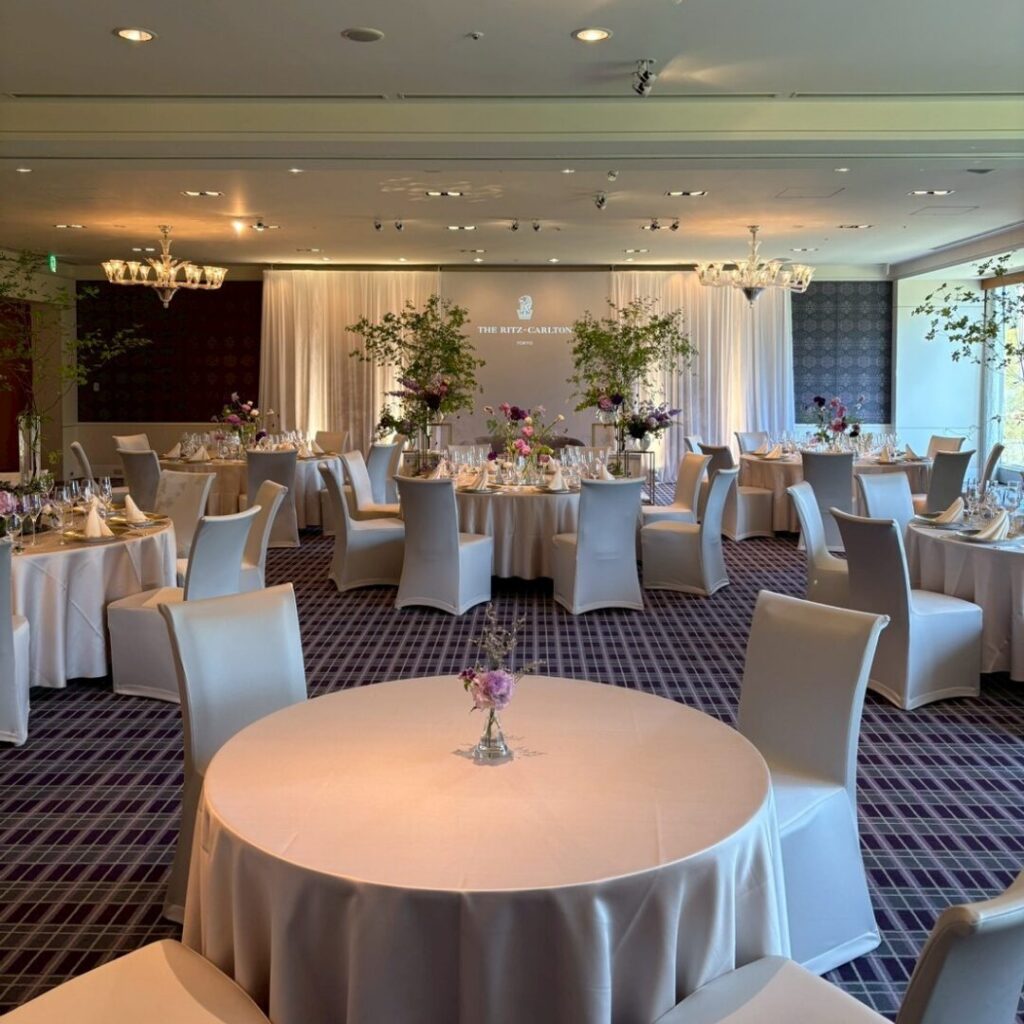 リッツは、電車の場合、雨に濡れず地下鉄直結で行ける点や、主要な都内の駅、空港からのリムジンバスも充実しているので、前泊するゲスト、当日遠方から来てくれるゲストにも優しいアクセスになっています。